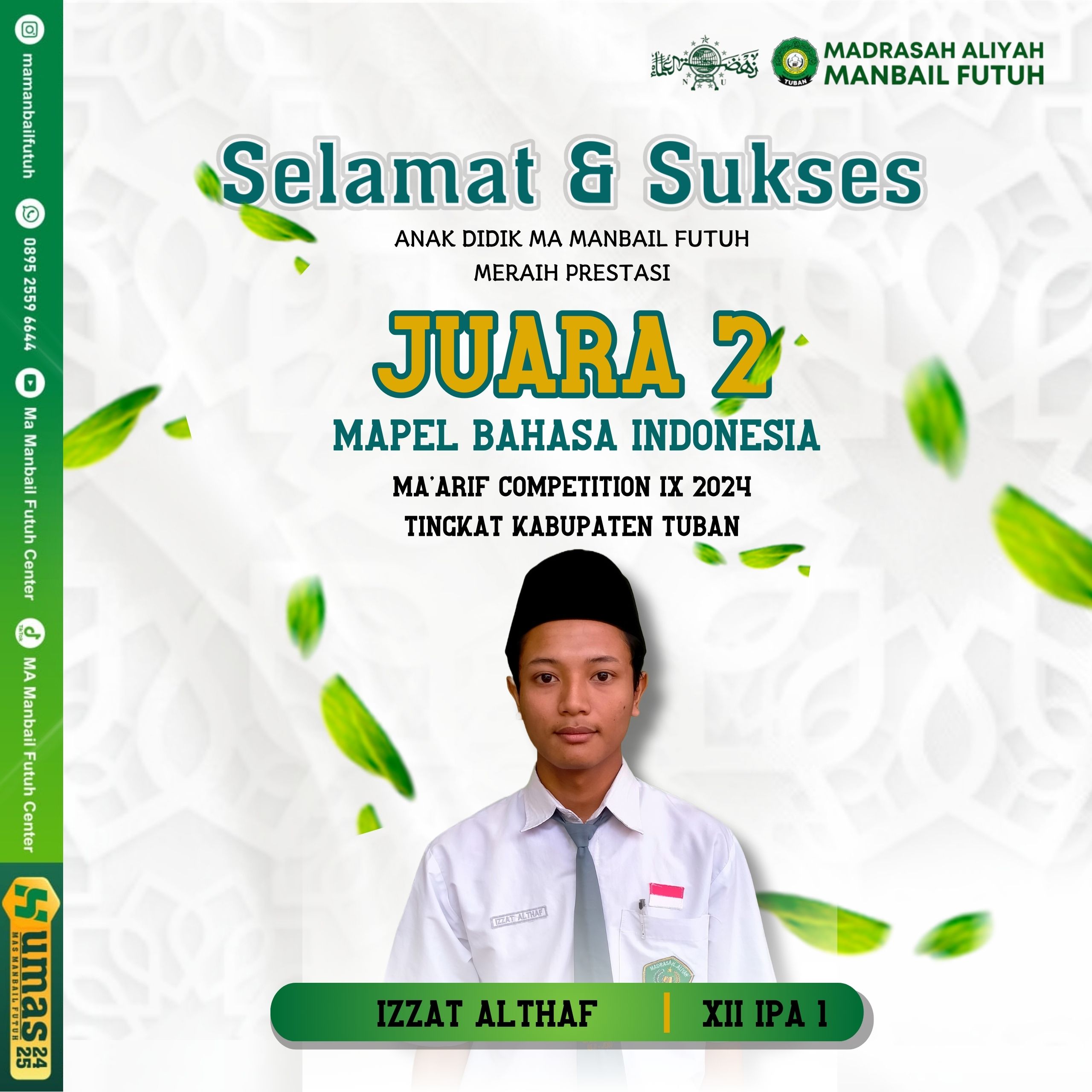 3. Izzat Altaf juara 2 mapel bahasa Indonesia